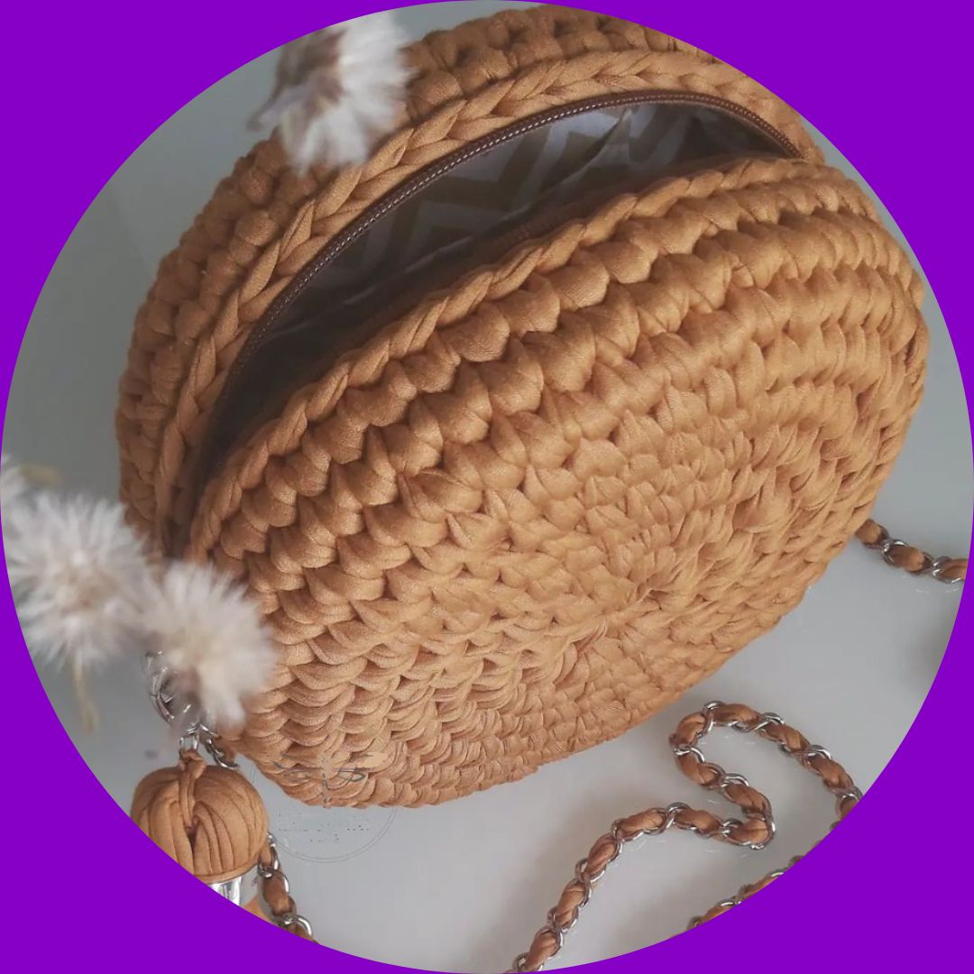 - Bolso redondo tejido en Punto Bajo Centrado.