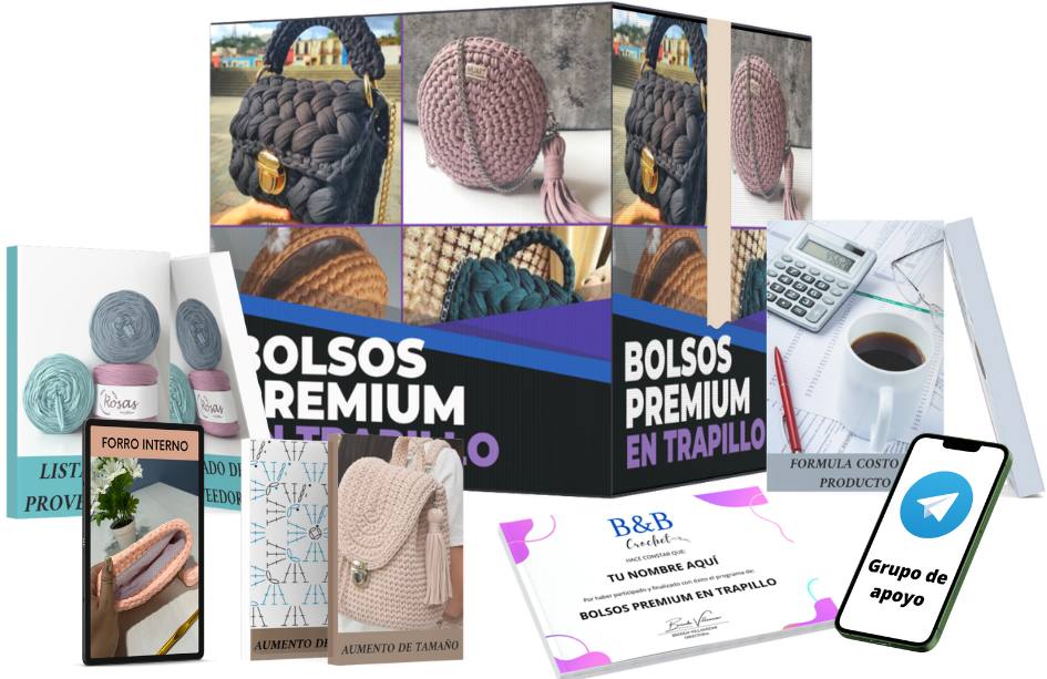 Con nuestro Programa Online BOLSOS PREMIUM EN TRAPILLO, aprenderás desde cero y paso a paso a crear hermosos bolsos exclusivos de alta calidad con acabados profesionales.