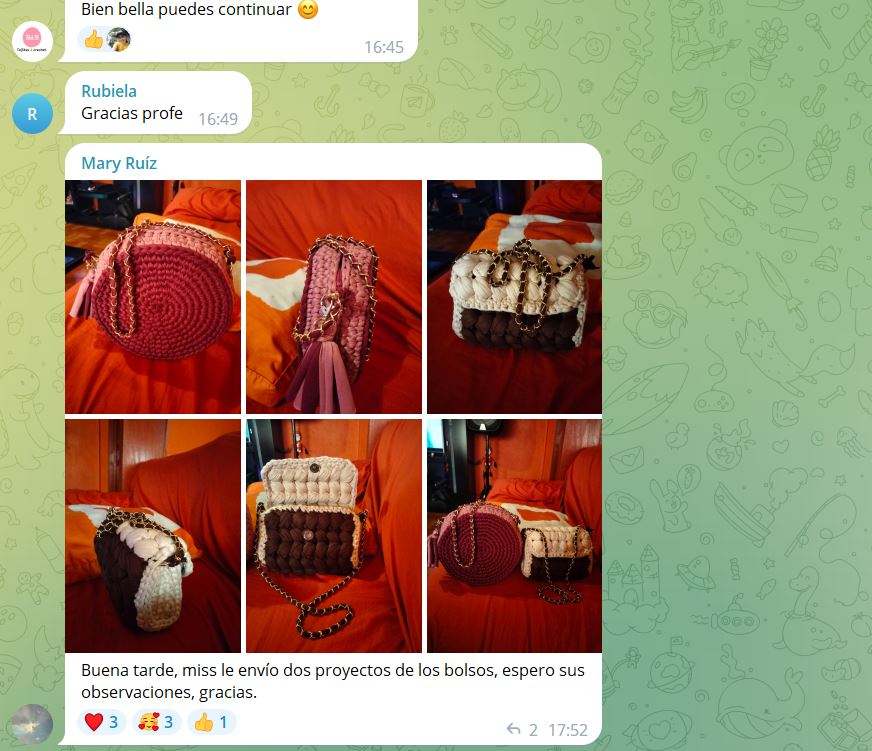 Al finalizar el programa estarás en la capacidad de tejer bolsos exclusivos que marquen diferencia en el mercado.